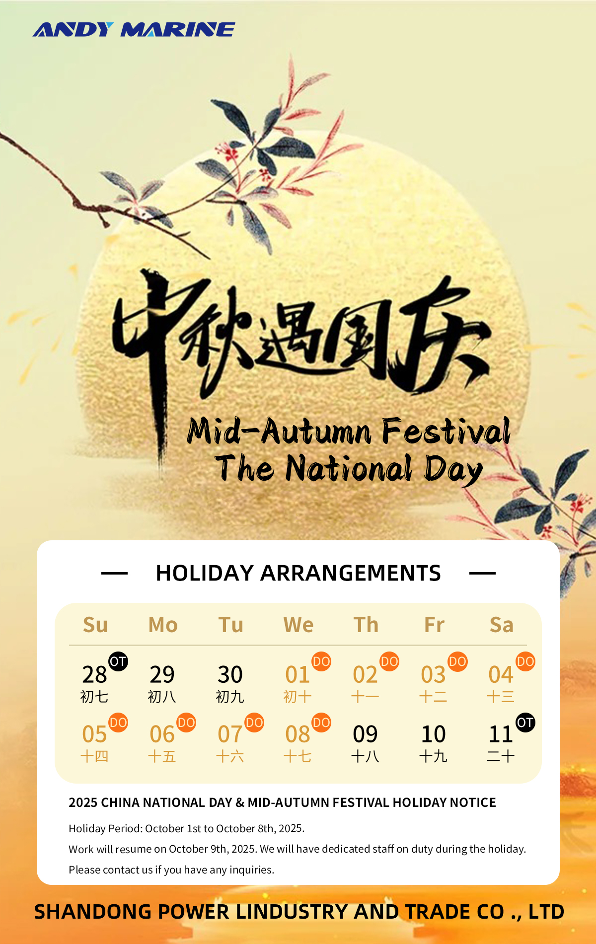 نحن نقدر بشدة تفهمكم وتعاونكم، ونتطلع إلى مواصلة شراكتنا الناجحة بعد العطلة.